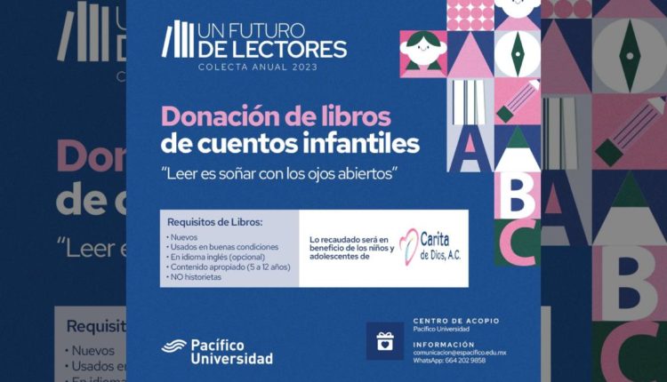 Tijuana B.C. 11 de abril de 2023.- Con el lema “Un futuro de lectores”, Pacífico Universidad organiza una colecta de libros para niños de entre 5 y 12 años, a la cual invitan a participar a la comunidad en general.